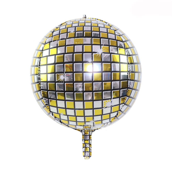 Balon foliowy 22" na hel lub powietrze, kula dyskotekowa złoto srebrna 4D.