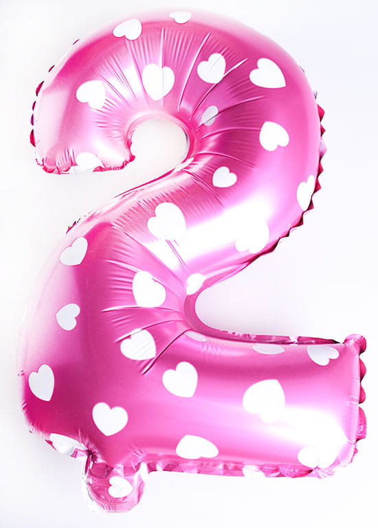 Balon foliowy cyfra 2, wymiary przed napompowaniem 40x31cm, kolor różowy