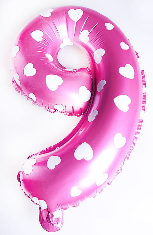 Balon foliowy cyfra "9, wymiary przed napompowaniem 40x31cm, kolor różowy