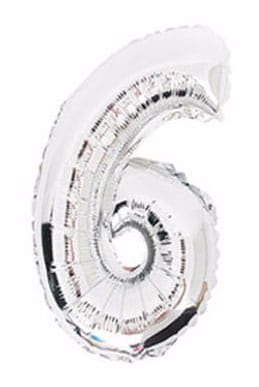 Balon foliowy cyfra "6, wymiary przed napompowaniem 40x31cm , kolor srebrny