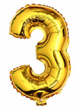 Balon foliowy na powietrze cyfra 3 w kolorze złotym. Będzie wspaniałą dekoracją sali urodzinowej! Rozmiar 75cm (wymiar przed napompowaniem). Balon posiada zaworek blokujący odpływ powietrza po napompowaniu. W zestawie znajduje się rurka umożliwiająca nadmuchanie balona. Balon przeznaczony jest do wielokrotnego użytku. W opakowaniu znajduje się 1szt.