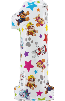 BALON FOLIOWY WIELKOŚCI 26" (66 CM) W KSZTAŁCIE LICZBY 1 Z MOTYWEM PAW PATROL. BALON DO NAPEŁNIENIA HELEM.
