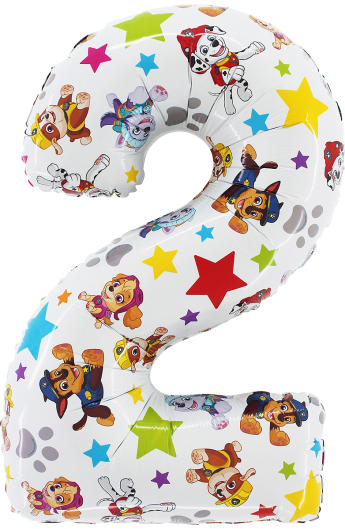 BALON FOLIOWY WIELKOŚCI 26" (66 CM) W KSZTAŁCIE LICZBY 2 Z MOTYWEM PAW PATROL. BALON DO NAPEŁNIENIA HELEM.