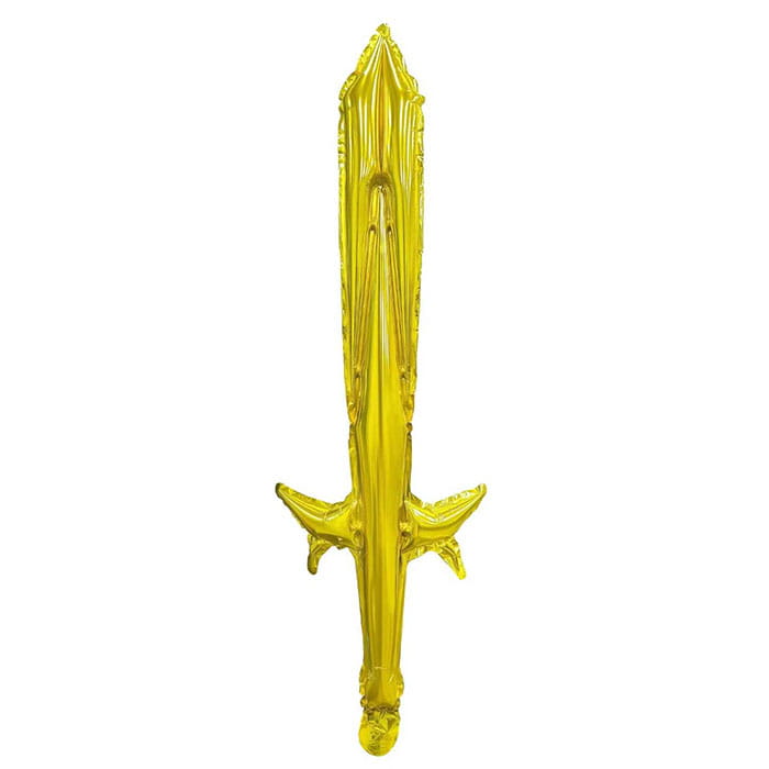 Balon foliowy o oryginalnym kształcie miecza w złotym kolorze.