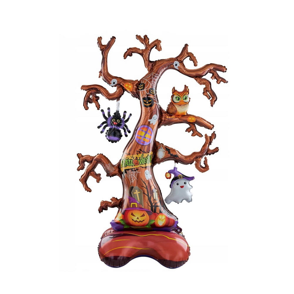 Balon foliowy w kształcie strasznego drzewa z podstawą, idealna dekoracja na Halloween.