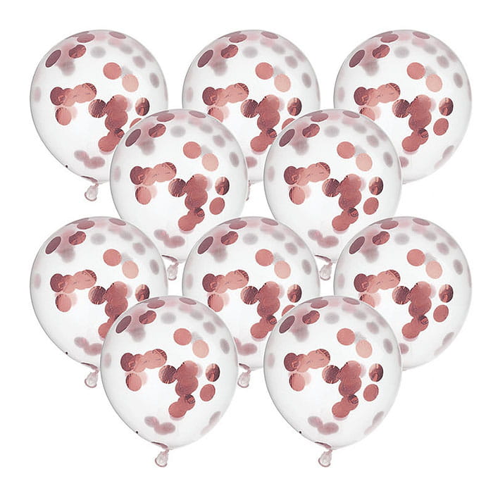 Balony lateksowe 30cm z konfetti gold rose, opakowanie 6szt