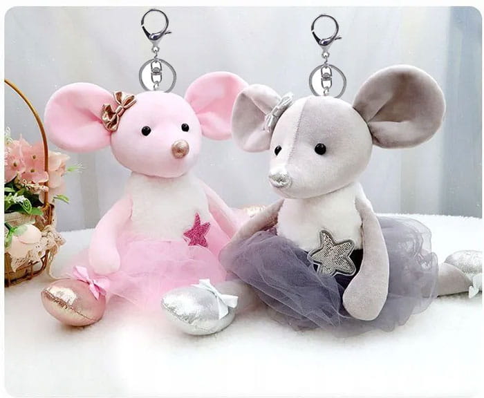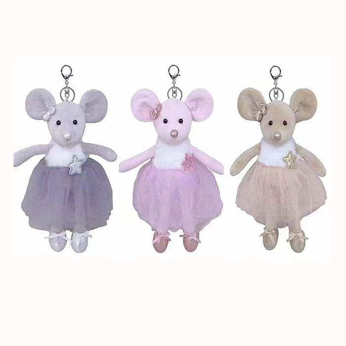 Uroczy i elegancki brelok w kształcie myszki baletnicy to idealny dodatek do kluczy, torebki czy plecaka. Wykonany z miękkiego pluszu, jest nie tylko stylowy, ale także przyjemny w dotyku.
