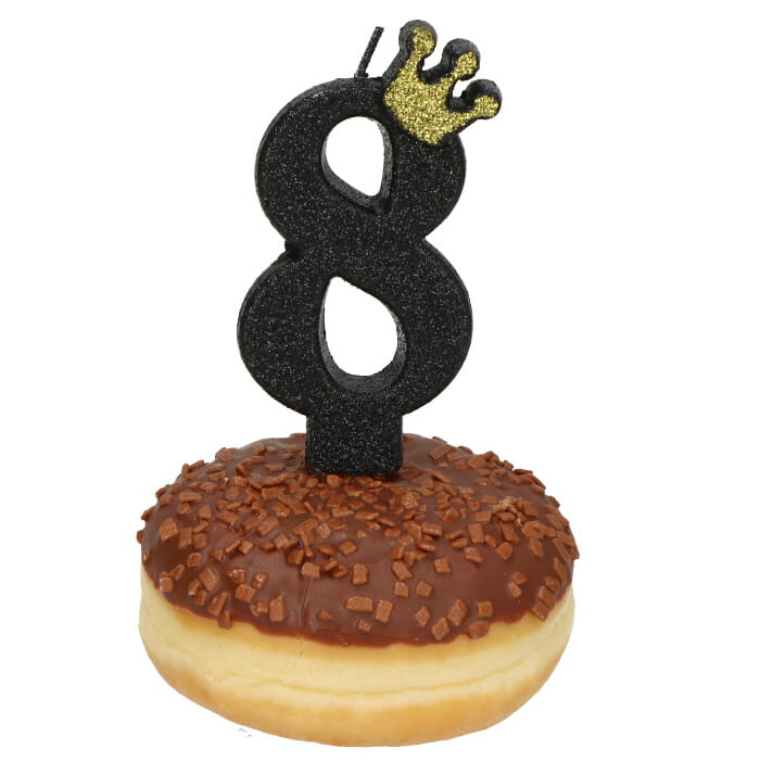ŚWIECZKA NA TORT BROKATOWA CZARNA CYFRA 8