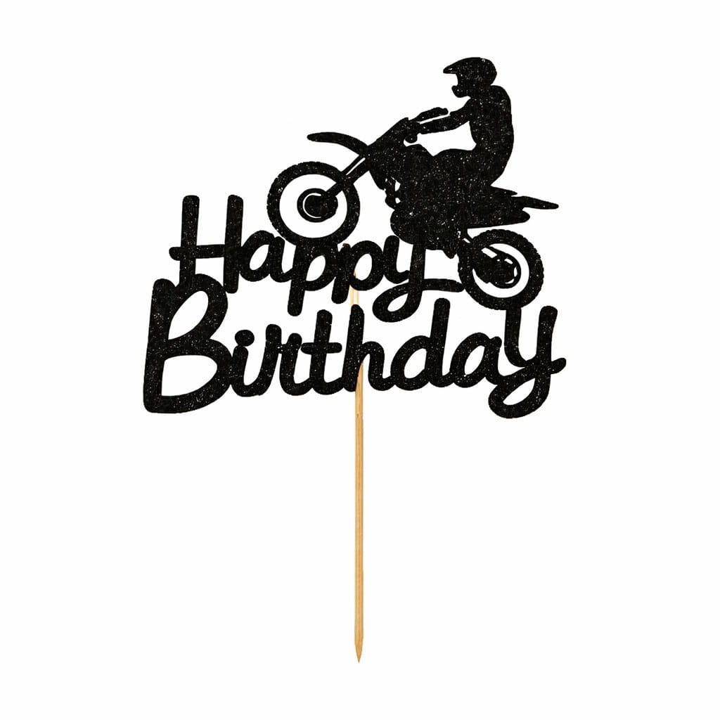 Topper na tort „Happy Birthday” – Motocross (brokatowy, wys. 22 cm)