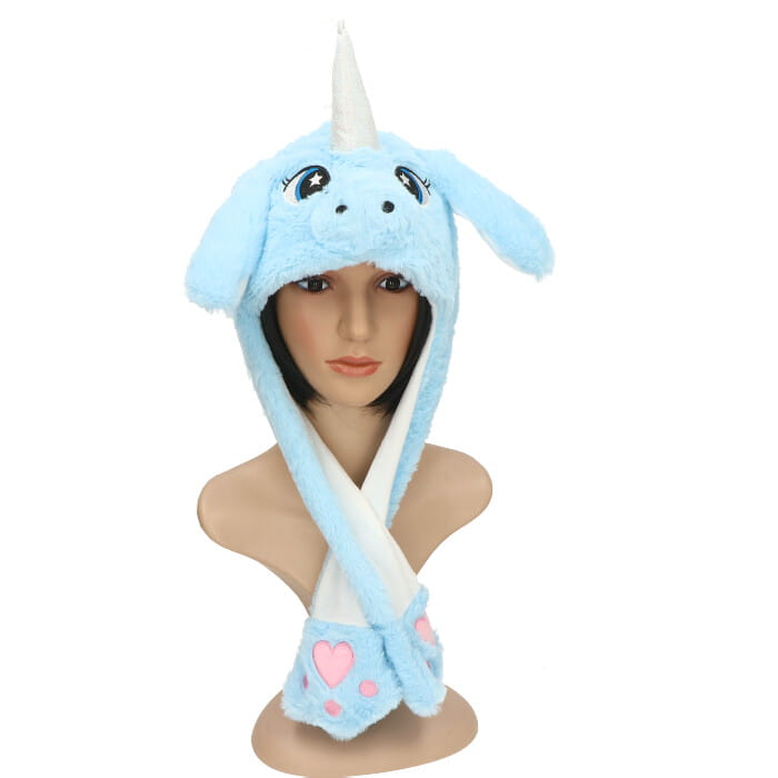 CZAPKA JEDNOROŻEC LED RUCHOME USZY STRÓJ NIEBIESKI