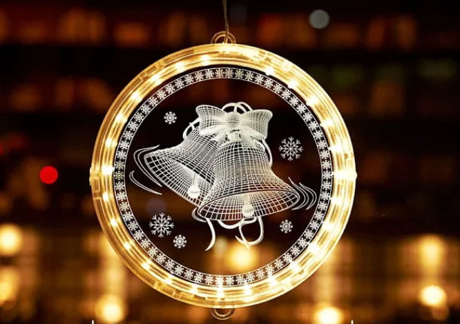 DEKORACJA BOŻE NARODZENIE WITRAŻ 3D DZWONECZKI LED 16CM