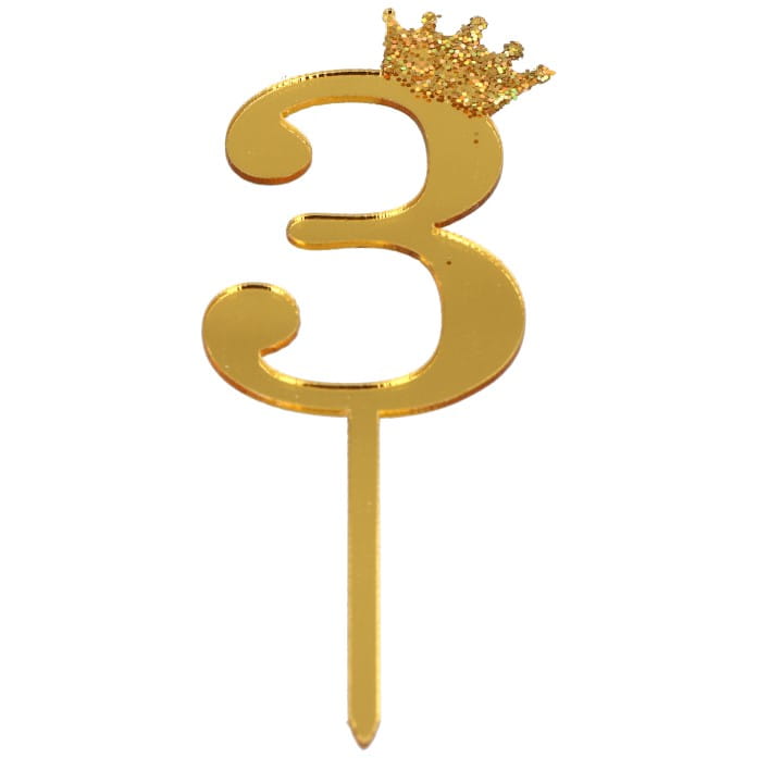 TOPPER NA TORT XXL ZŁOTA 3 Z KORONĄ BROKATOWĄ.