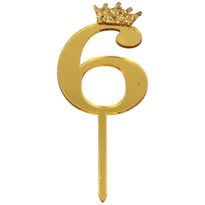 TOPPER NA TORT XXL ZŁOTA 6 Z KORONĄ BROKATOWĄ.
