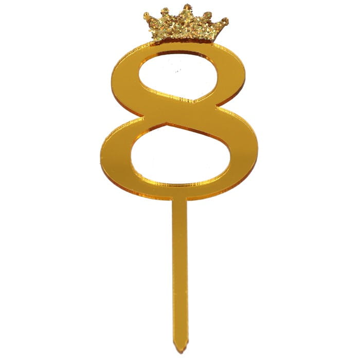 TOPPER NA TORT XXL ZŁOTA 8 Z KORONĄ BROKATOWĄ.