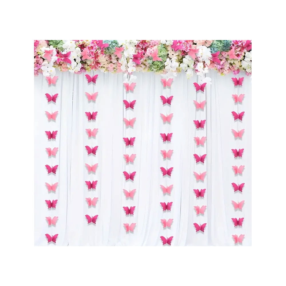Stwórz lekką i bajkową atmosferę na swojej uroczystości dzięki girlandzie z motylami. Wykonana z papieru, prezentuje się niezwykle efektownie, a jej długość 3 metry pozwala na szerokie zastosowanie w aranżacji wnętrz i sali.