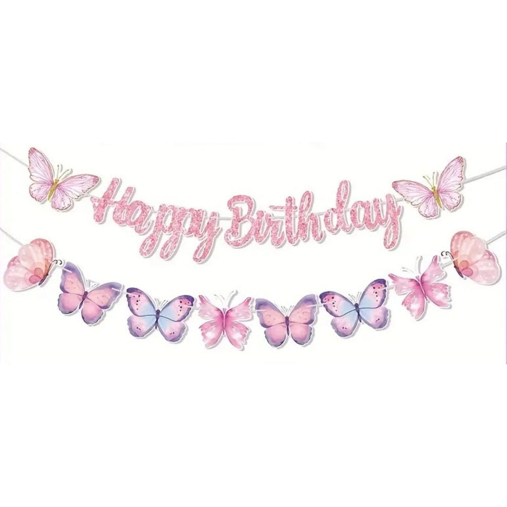 ⭐ Girlanda Urodzinowa „Happy Birthday” z Motylami ⭐