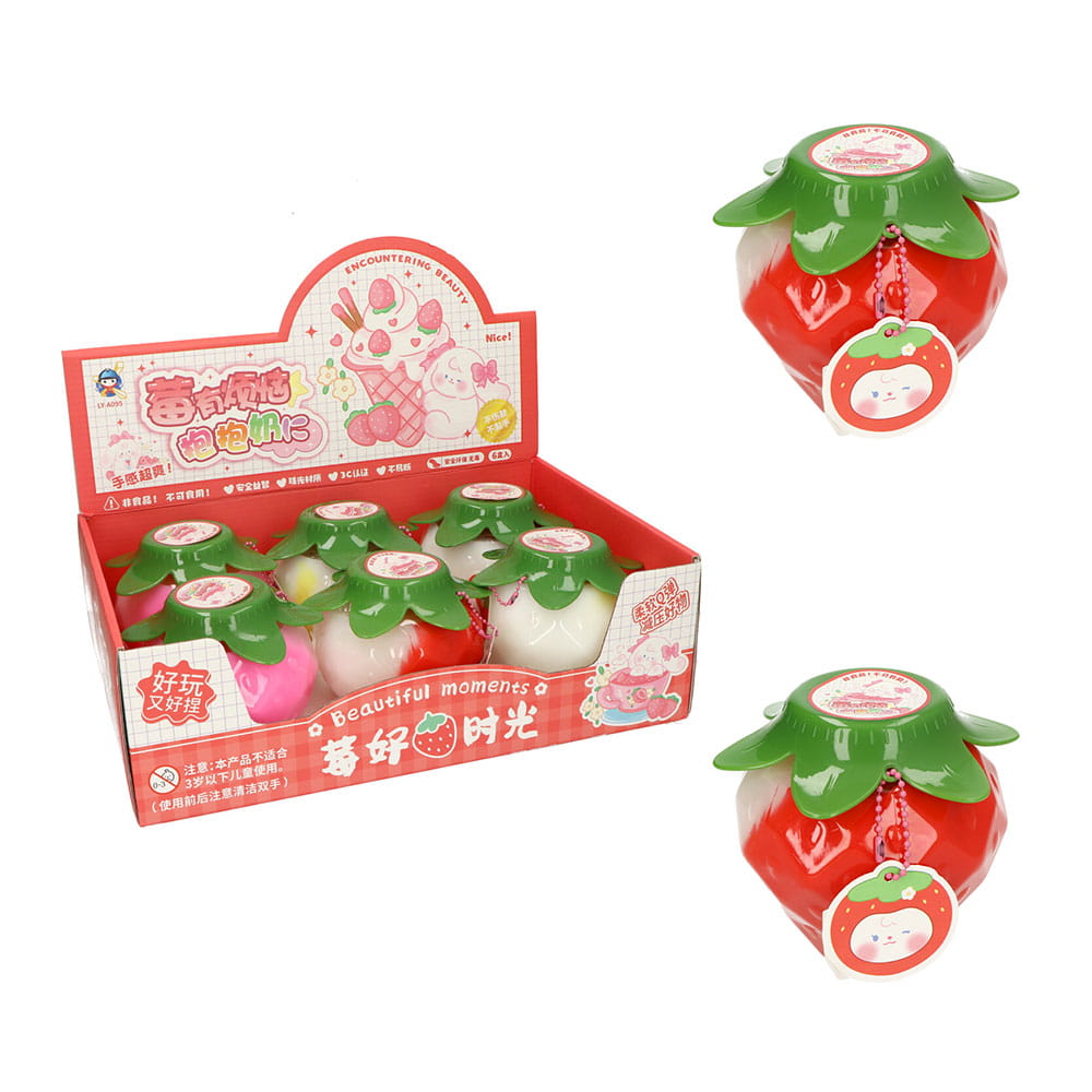 Odkryj magiczny świat zabawy z tym uroczym, pachnącym slime’em w kształcie truskawki! Całość zamknięta jest w ślicznym, truskawkowym opakowaniu z zieloną pokrywką przypominającą listki owocu.