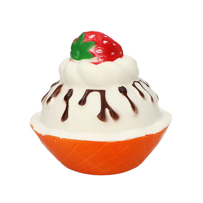 Uroczy gniotek antystresowy w kształcie apetycznego deseru lodowego z truskawką . Idealny do ściskania, ugniatania i relaksu – dla dzieci i dorosłych!