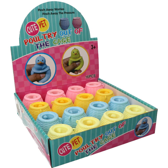 ⭐Gniotek Kurczak Wyskakujący z Koszyka – Zabawka Antystresowa (16 sztuk)⭐