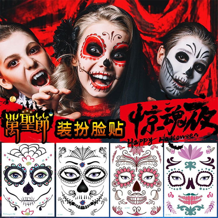 Halloween naklejki tatuaże na twarz paczka 12 arkuszy.