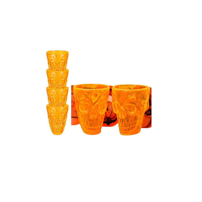 KIELISZKI CZASZKI NA HALLOWEEN 4SZT POMARAŃCZOWE