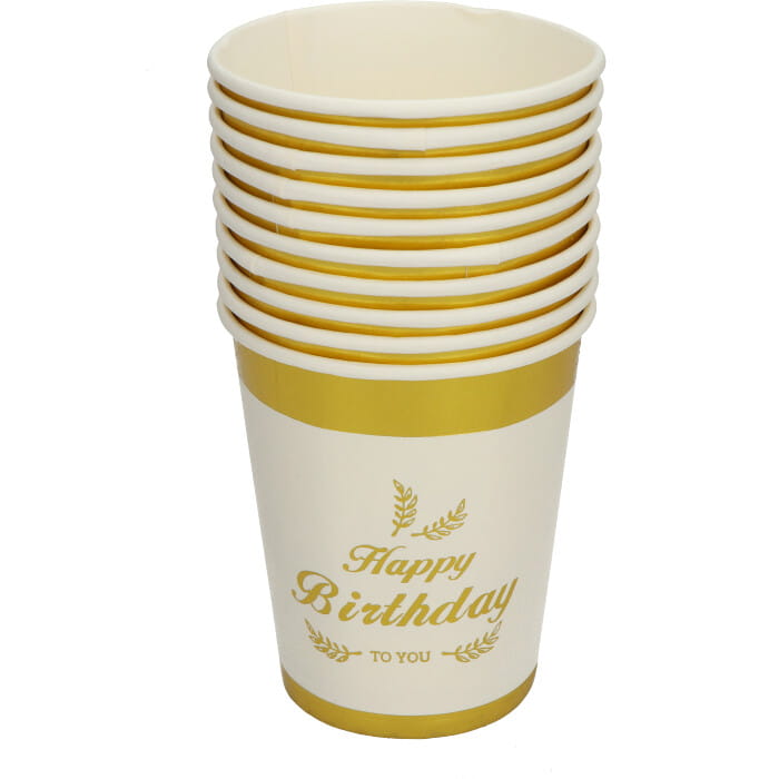 KUBECZKI PAPIEROWE HAPPY BIRTHDAY TO YOU ZŁOTE 10SZT