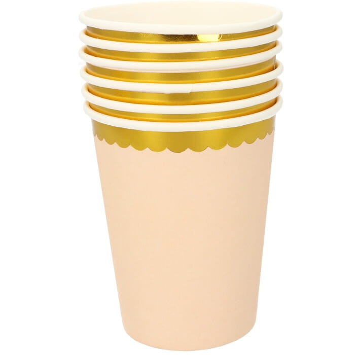 KUBECZKI PAPIEROWE RÓŻOWE ŁOSOSIOWE ZŁOTY BRZEG 220ML 6SZT