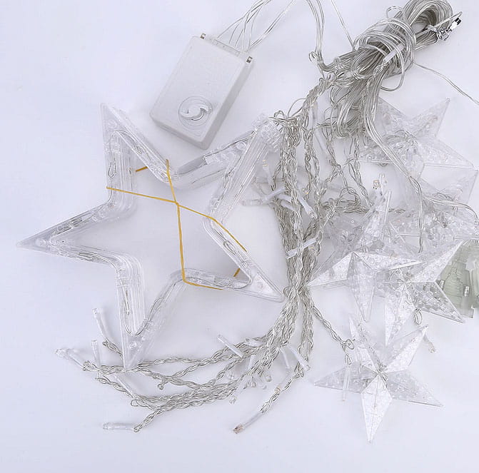 Kurtyna świetlna 3m, 136led, kolor multikolor.Kutyna może być używany w wielu dziedzinach - zarówno jako ozdoba na Boże Narodzenie czy też zwykłe przyjęcie.Energooszczędne, intensywne światło.Przepalenie diody nie wygasza całego zestawu. Szerokość 3m, 6 gwiazdek dużych 16cm, 6 gwiazdek małych 9cm .