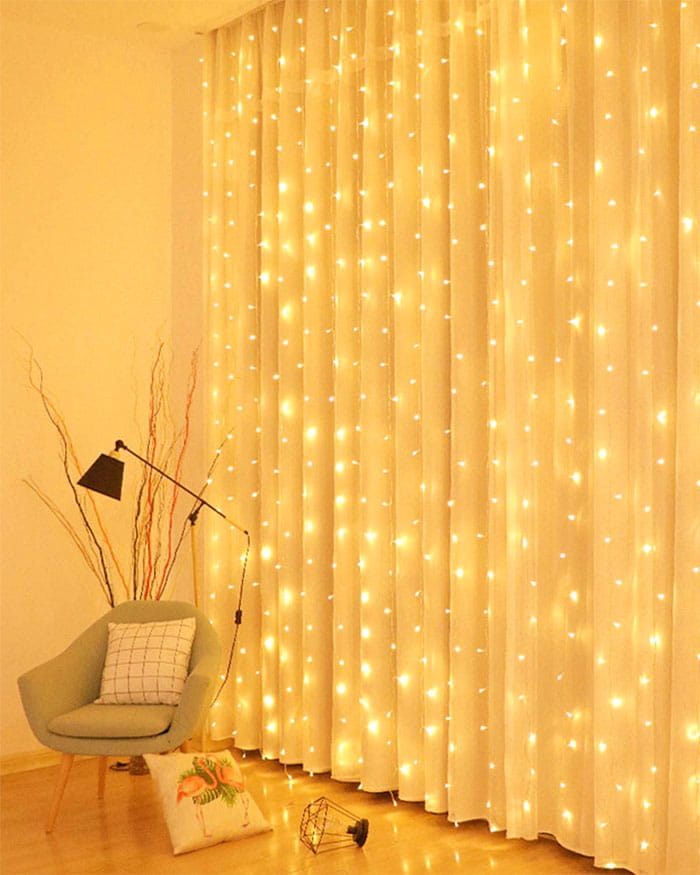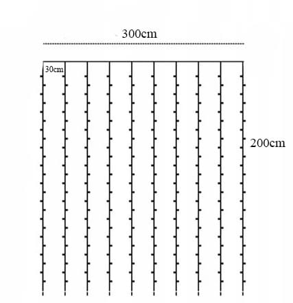 Kurtyna świetlna 3x2m, 200 led, kolor biały ciepły.Kutyna może być używany w wielu dziedzinach - zarówno jako ozdoba na Boże Narodzenie czy też zwykłe przyjęcie.Energooszczędne, intensywne światło.Przepalenie diody nie wygasza całego zestawu.Kurtyna z programatorem, różne tryby świecenia.