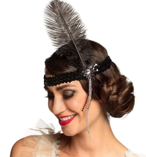 Świetnie wygląda z falami w stylu retro, gładkim kokiem albo upięciem z boku. Połącz ją z perłami, frędzlami i czerwoną szminką, żeby domknąć look Charleston.