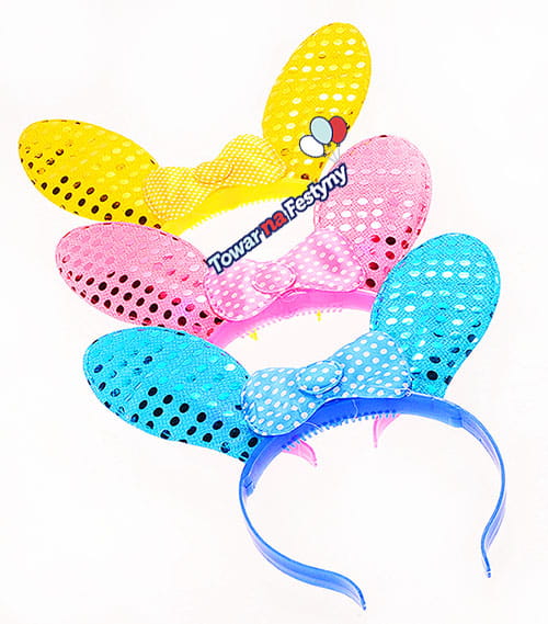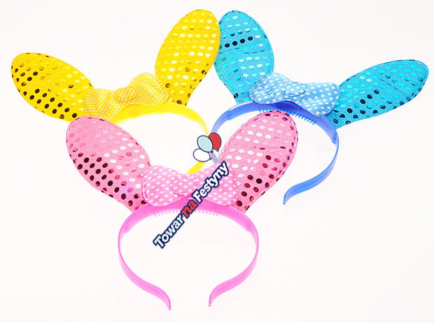 OPASKA ŚWIECĄCA USZY KRÓLIKA BŁYSZCZĄCE Z KOKARDKĄ 12SZT A23