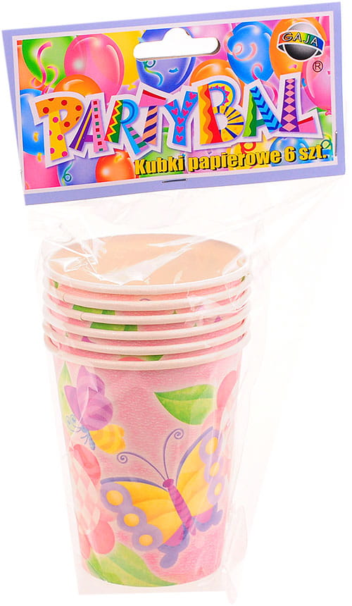 Jednorazowe kubeczki papierowe motyl,opak. 6 sztuk,wysokość 8 cm