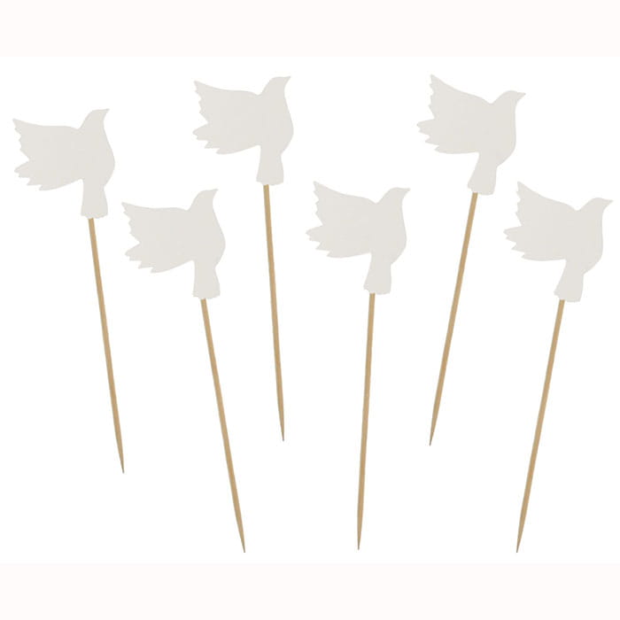Pikery do ozdabiania muffinek i babeczek w kształcie gołąbków. Piękna dekoracja na chrzest i 1 komunię. Pikery gołąbki to ozdoba tortowa, którą udekorujesz babeczki, muffinki, tort, ciasto i inne słodkości. Z powodzeniem zastąpią świeczki na torcie komunijnym lub będą ich pięknym uzupełnieniem.