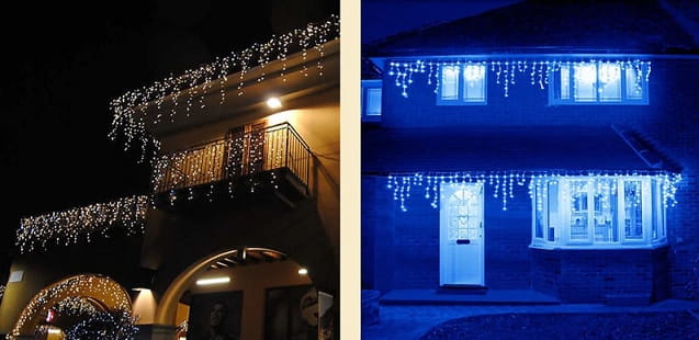 Oświetlenie Wnętrz i Zewnętrzne: Niech Twoje święta błyszczą nie tylko w domu, ale także na balkonie czy balustradzie. Sople idealnie sprawdzą się zarówno wewnątrz, jak i na zewnątrz.