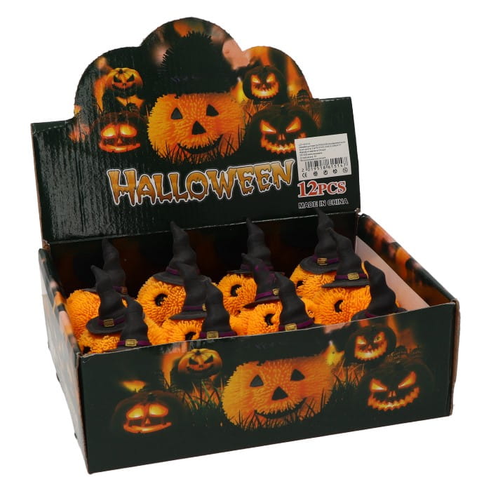 Gniotek gumowy - dynia na Halloween. Zabawka pokryta gumowymi wypustkami, w środku znajduje się element świecący - wystarczy rzucić nią o twarde podłoże, wówczas włącza się krótka sekwencja świetlna, która tworzy ciekawy efekt wizualny. Zabawka typu antystresowego, dodatkowo świetny gadżet na obchody Halloween.