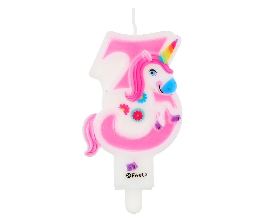 ŚWIECZKA CYFRA 3 Z JEDNOROŻCEM