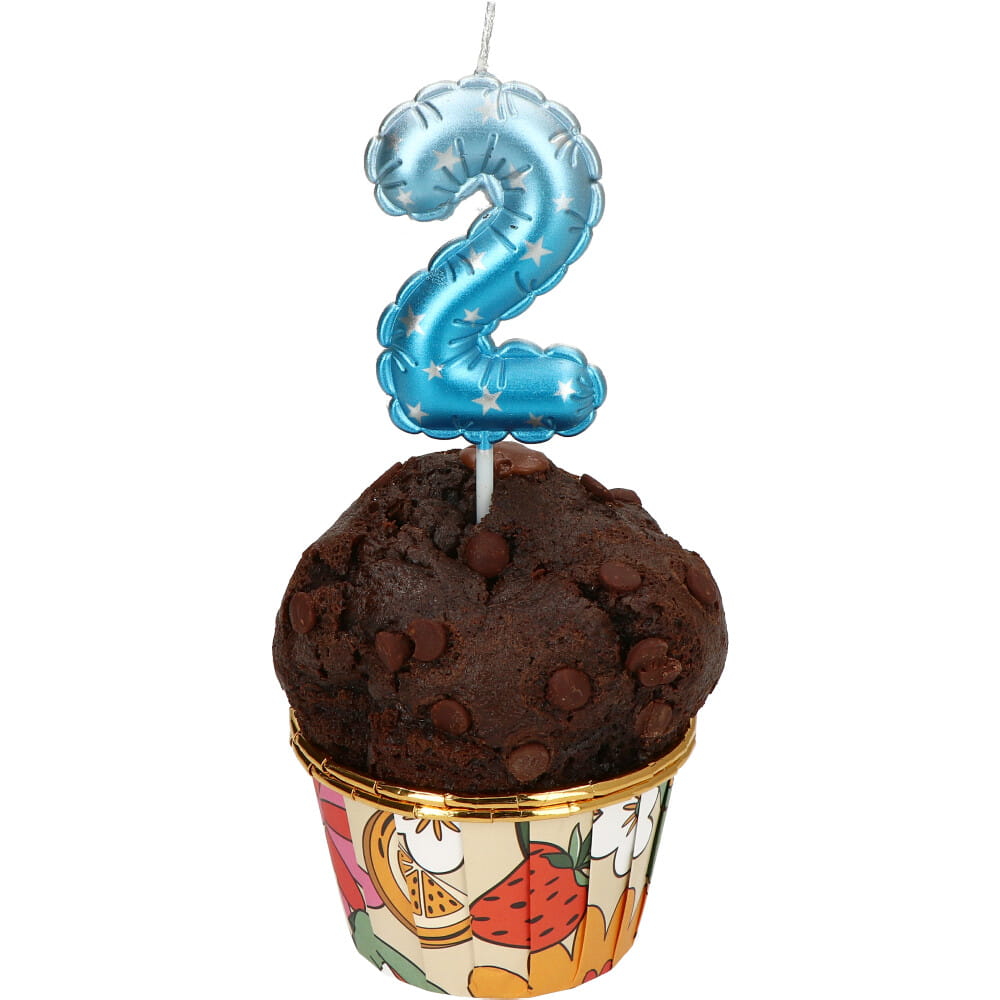 Świeczka urodzinowa cyfra 2 – niebieska w gwiazdki, 6 cm