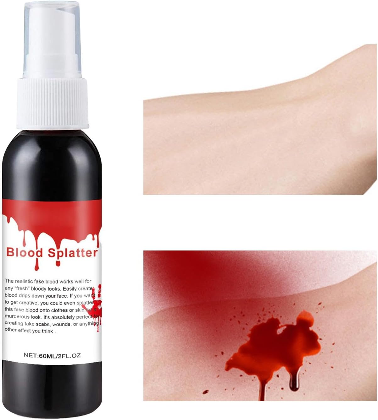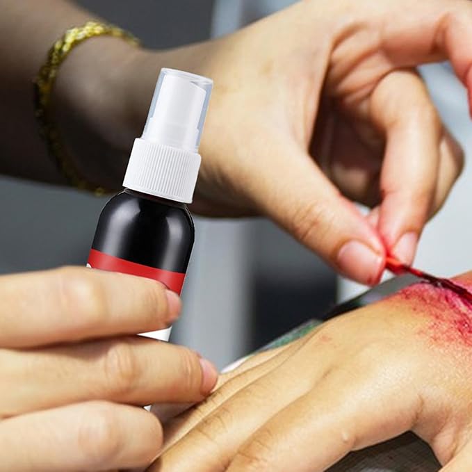 ✔️ Bezpieczna dla skóry i łatwa do zmycia – Krew w sprayu jest nietoksyczna i bezpieczna do użytku na ciele. Można ją łatwo zmyć wodą, co sprawia, że po imprezie wrócisz do normalności bez problemów.