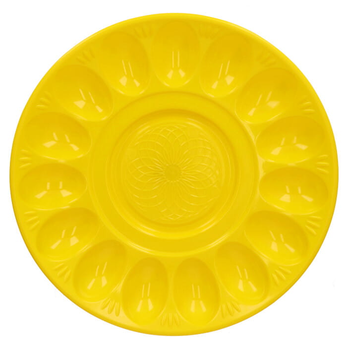 W paterze znajduje się 15 wgłębień, w których umieścisz połówki ugotowanych na twardo jajek lub całe jajka w skorupkach np. pięknie ozdobione pisanki. Na środku patery jest miejsce do postawienia miseczki z majonezem lub sosem tatarskim. Jajka podane w ten sposób będą wyglądały apetycznie, a patera stanie się ważnym elementem dekoracji stołu.W opakowaniu 10szt,wykonane z plastiku, mix kolorów.