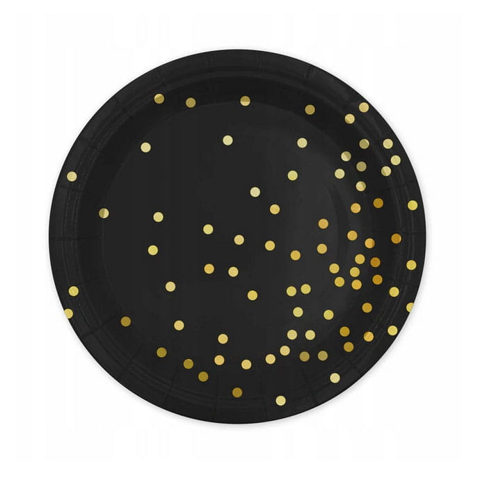 TALERZYKI PAPIEROWE CZARNE W ZŁOTE KROPKI 18CM 6SZT