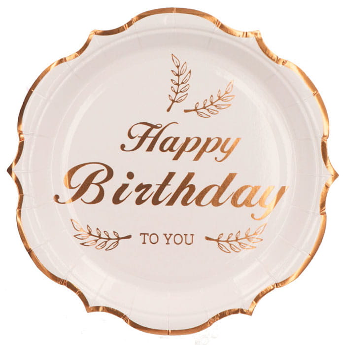 TALERZYKI PAPIEROWE HAPPY BIRTHDAY TO YOU GOLD ROSE 10SZT
