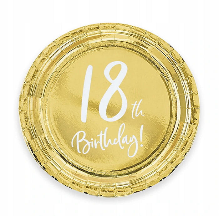 TALERZYKI PAPIEROWE NA 18 URODZINY OSIEMNASTKĘ 18 TH BIRTHDAY ZŁOTE 17CM 6SZT