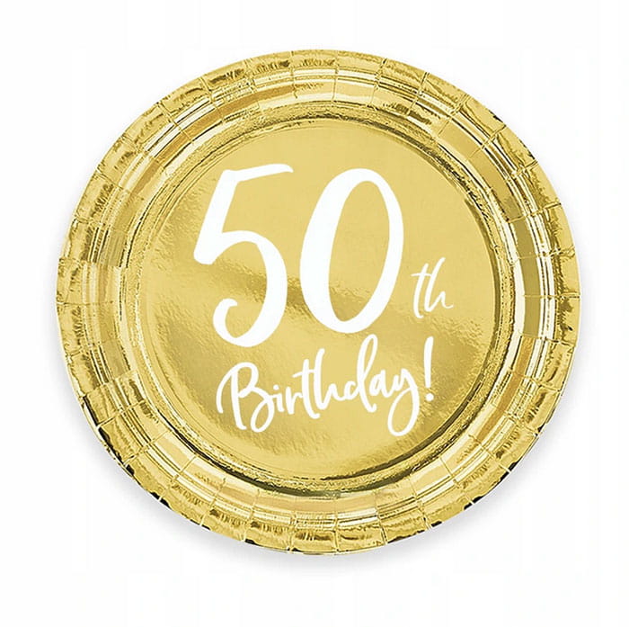 TALERZYKI PAPIEROWE NA 50 URODZINY 50 TH BIRTHDAY ZŁOTE 17CM 6SZT