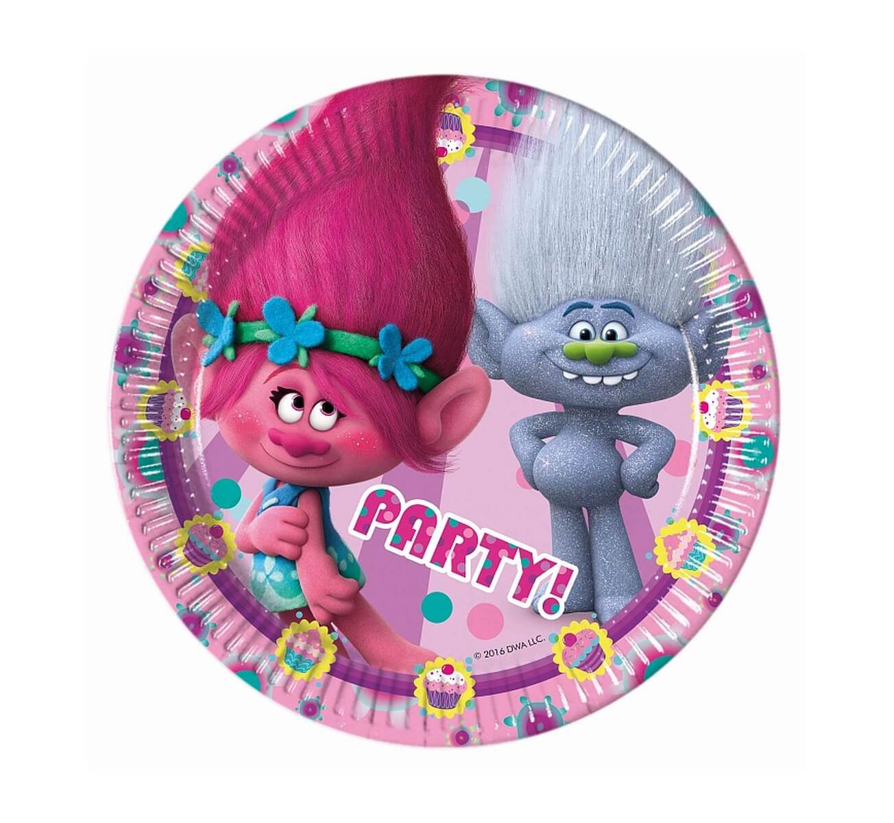 Talerzyki papierowe Trolls,opak 8 sztuk,średnica 20 cm