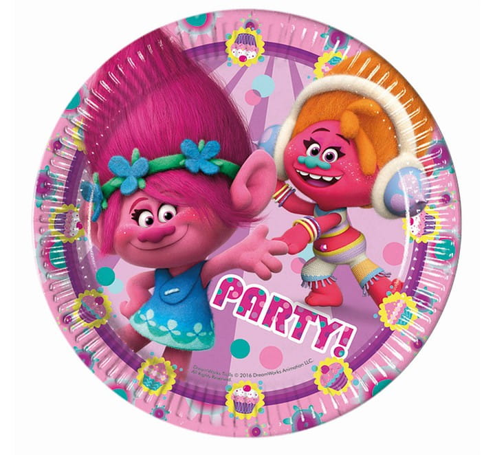 Jednorazowe talerzyki papierowe Trolls,opak 8 sztuk,średnica 23 cm