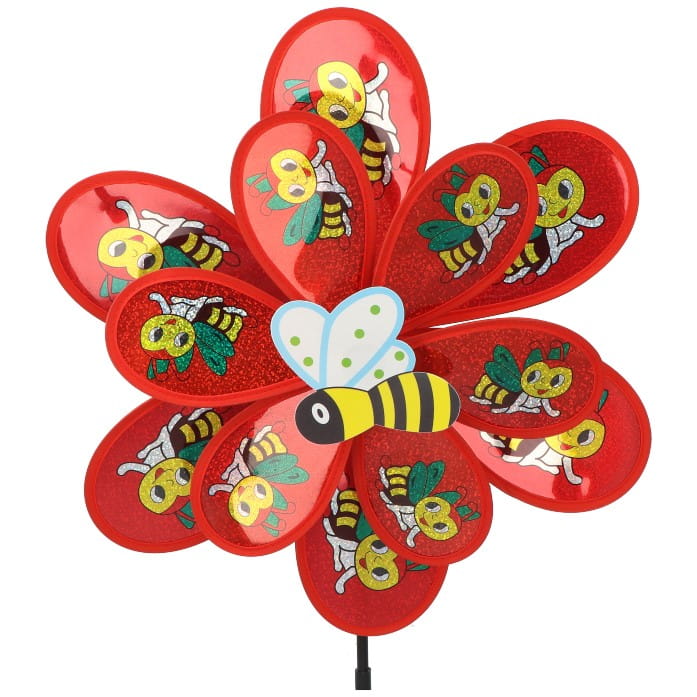 WIATRAK OGRODOWY DUŻY 75CM PSZCZÓŁKI CZERWONY