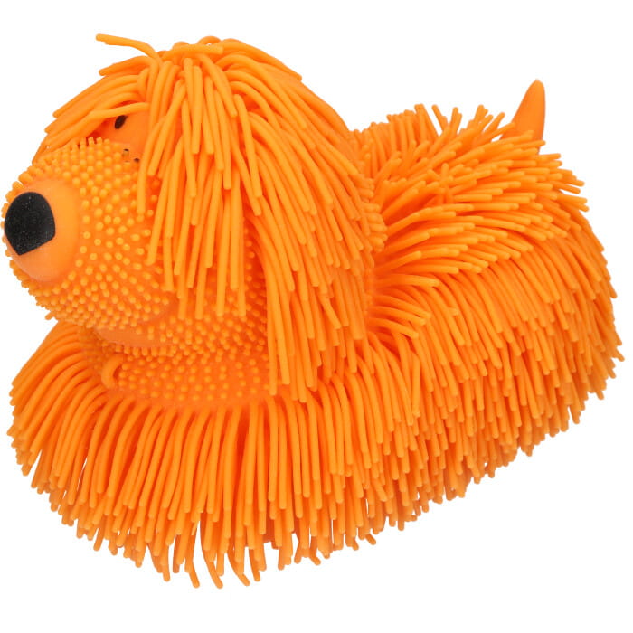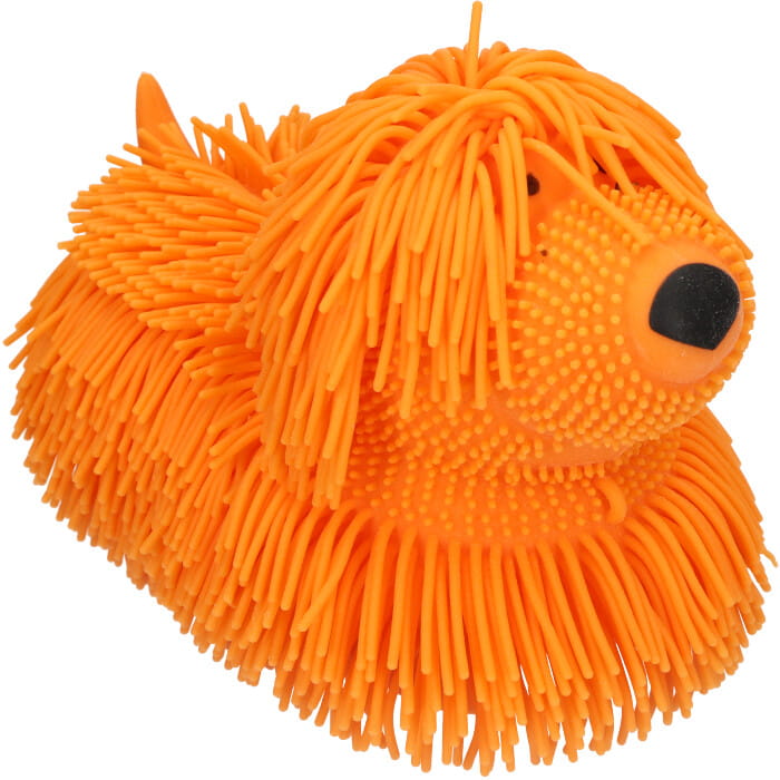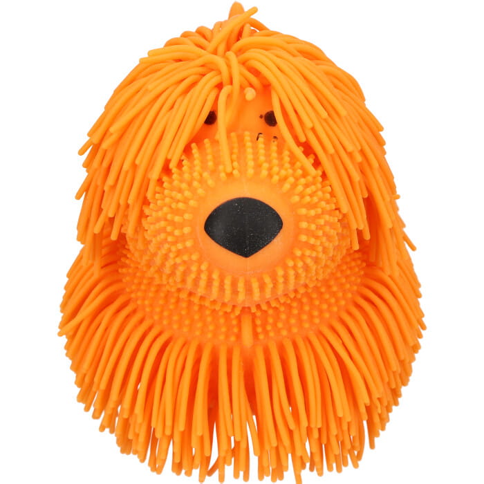 Duży włochaty piesek z frędzlami z elastycznej i przyjemnej w dotyku gumy, wypełniona powietrzem.