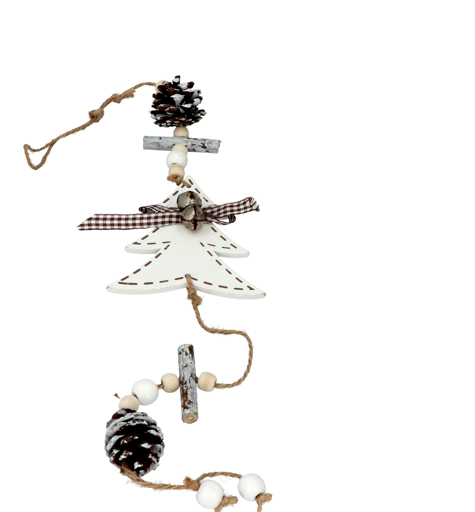 ZAWIESZKA DREWNIANA CHOINKA Z KOKARDKĄ W KRATKĘ NA BOŻE NARODZENIE