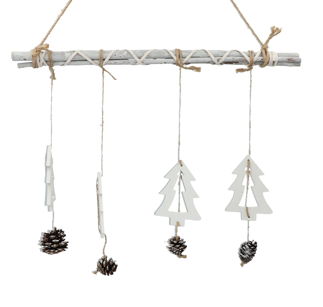 Zawieszka drewniana na gałązce choinki z szyszkami, szerokość ok 38cm