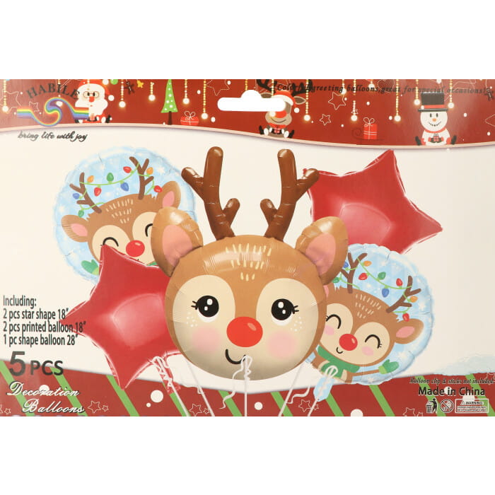ZESTAW BALONÓW BOŻE NARODZENIE RENIFER 5 SZT
